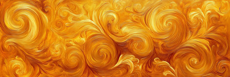 Swirling Abstract Background in Intense Yellow Vector Graphic with Brush Strokes and Flowing Lines
