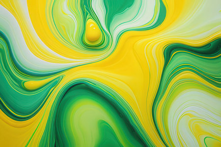 abstract yellow and green background with swirls of paint in water