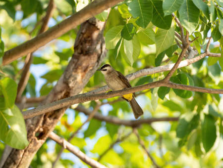 Bird streak-eared bulbul (pycnonotus blanfordi) on the tree
