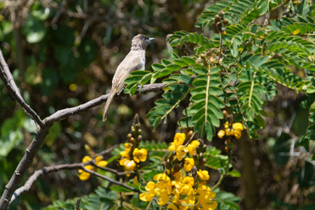 Yellow-vented Bulbul bird perched on the branches
