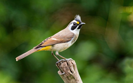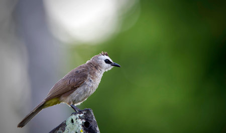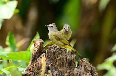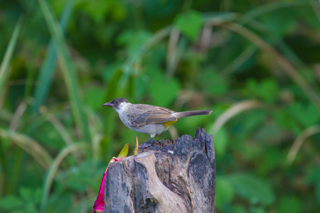 beautiful yellow-vented bulbul standing on the log