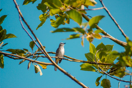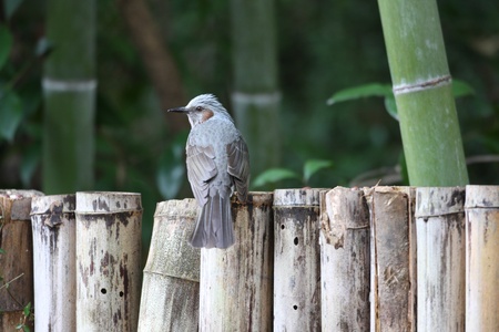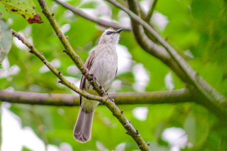 Streck-eared bulbul,beautiful grey bird perching on branches