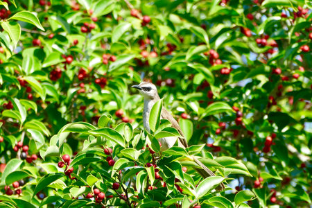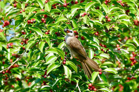 Bulbul bird is eatting wild fruit