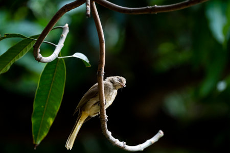 Ayeyarwady bulbul (Pycnonotus blanfordi) on branch in forest
