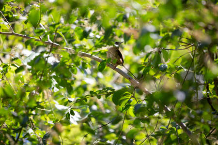 Stripe-throated Bulbul - Pycnonotus finlaysoni, beautiful shy perching bird from Asian forests and woodlands, Thailand.