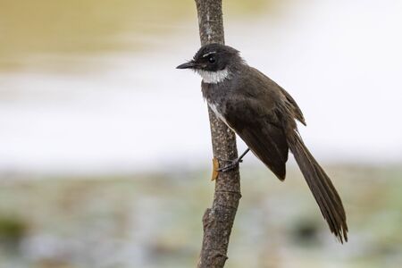 Sunda Pied Fantail or Malaysian Pied Fantail perched on tree branch.