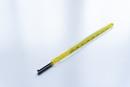 Mercury thermometer. The normal temperature of a healthy person is 36.6