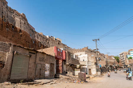 Hyderabad Old City Wall Picturesque Breathtaking View of Common Buildings and Road Traffic on a Sunny Blue Sky Day
