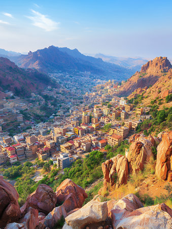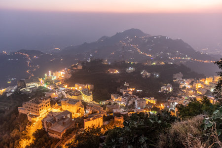 Evening aerial view of Fayfa town, Saudi Arabia