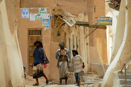 Shibam, Yemen, September 12, 2006 - Men walk by the street in Shibam, Yemen.