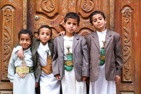 Sana, Yemen - 18 January 2008: group of boys with traditional clothes at Sana on Yemen