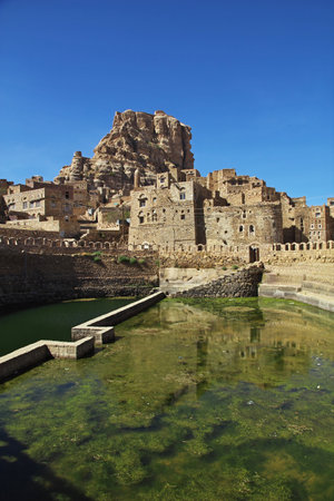 Thula / Yemen - 02 Jan 2013: The pool in Thula village in mountains, Yemen