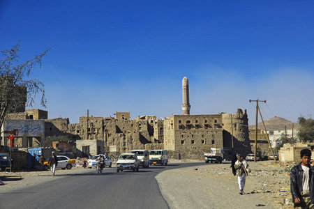 Sana'a, Yemen - May 12, 2015: City of Sana'a, streets and buildings of the city in Yemen, sights and architecture of the Middle East.