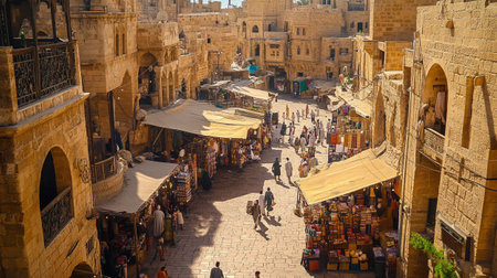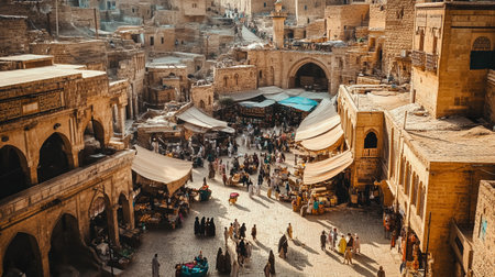 Sana, Yemen - 27 January 2008: people walking and buying on the market of old Sana on Yemen