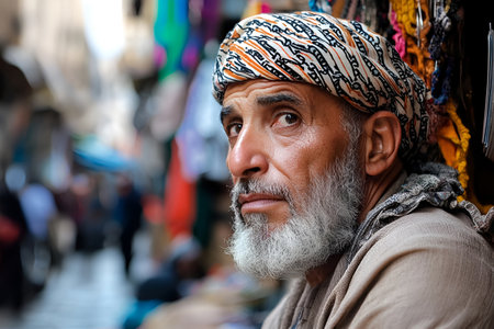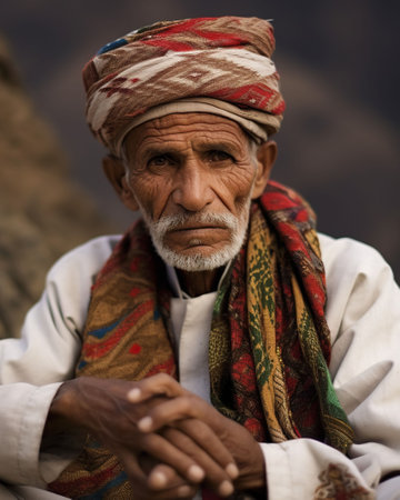 portrait of a middle eastern man with traditional clothing and headwear