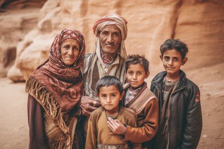 Portrait of a group of multi ethnic Muslim people in the ancient city of Petra, Jordan