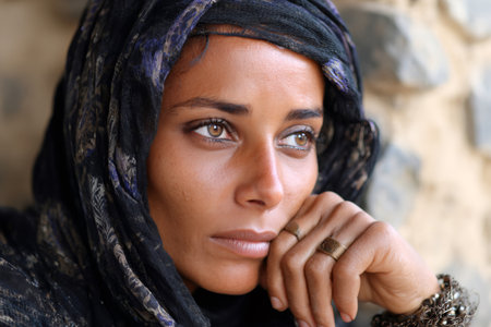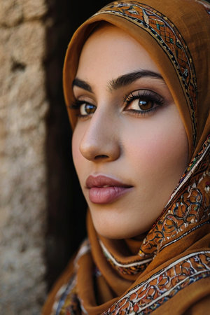 profile portrait close up of a beautiful middle eastern woman wearing a hijab