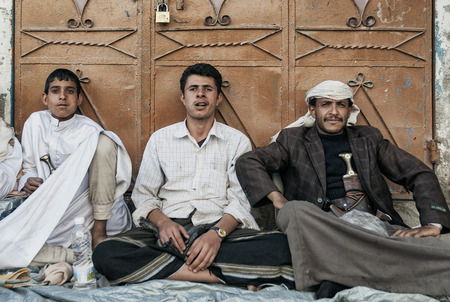 Sana, Yemen - 18 January 2008: group of boys with traditional clothes at Sana on Yemen