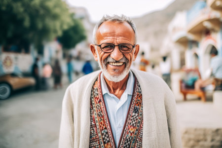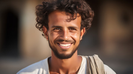 A resident of Afghanistan, this smiling man radiates warmth and happiness, displaying a rich cultural heritage while embracing life. His genuine expression reflects the beauty of his surroundings. AI.