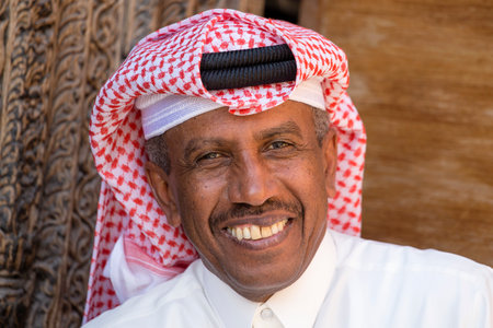 DOHA, QATAR - DECEMBER 25, 2017 : Portrait old arabic man in Souq Waqif market. Doha, Qatar