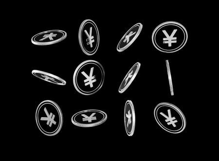 Silver And Black Falling Japanese Yen Rounded Coins Isolated On Black Background 3d Illustration