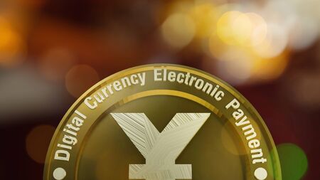 yuan symbol on gold coins 3d rendering for china Digital Currency Electronic Payment content.