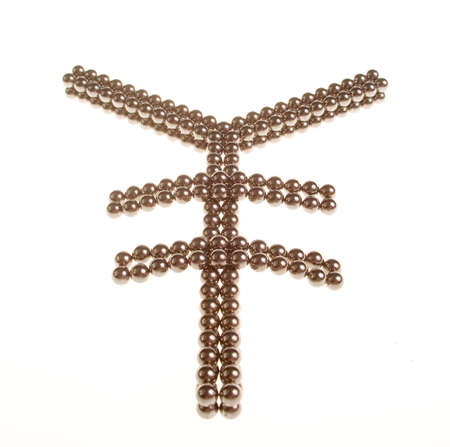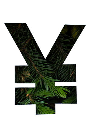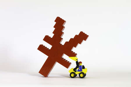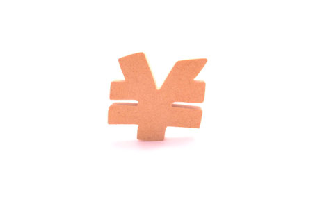 chinese currency symbol made with black domino tiels, isolated on white background. Market volatility concept.