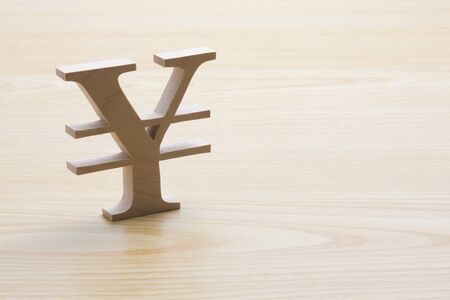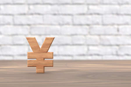 Exchange rate. Wooden yuan or yen and broken ruble symbol on brick wall background