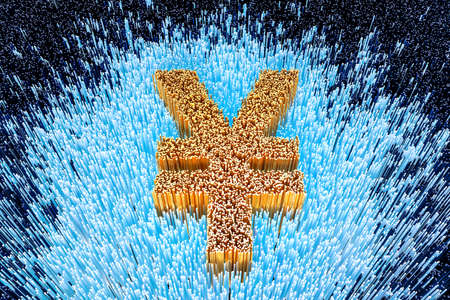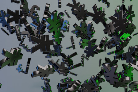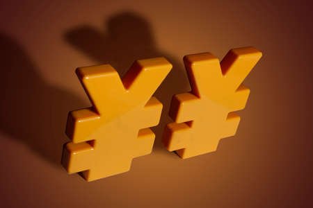 The Japanese Yen symbols laid out neatly lined up. There is only one vertical. 3D Rendering
