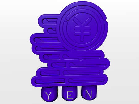 3D graphical image of YEN vertically along with text built by metallic cubic letters from the top perspective, excellent for the concept presentation and slideshows. illustration and currency