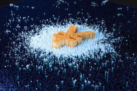 Yen currency symbol consisting of digital blocks. Blockchain concept, 3D rendering