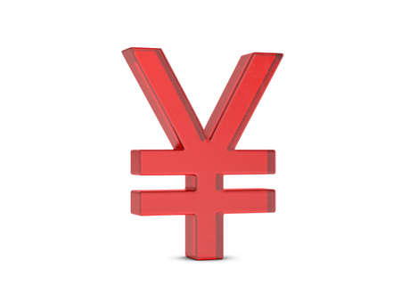 Glass Japanese yen sign against red and orange background. 3D rendering