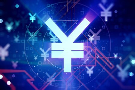 Japanese Yen, JPY Yen currency, Monetary currency symbol, Blue symbol
