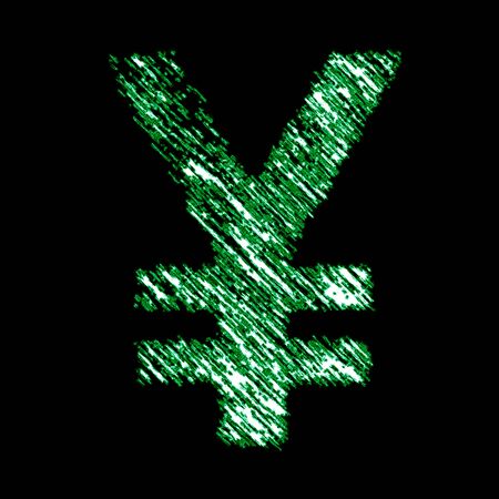 Abstract virtual Japanese Yen symbol sketch on shiny metal background, strategy and forecast concept. Multiexposure