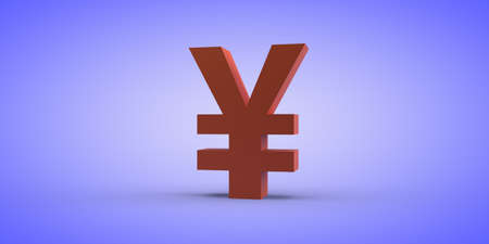 Symbol of yen, Japanese yen sign on purple color background. 3d illustration.