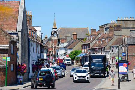 View along North Street towards the Victorian Town Hall in the town centre, Wareham, Dorset, England, UK, Western Europe.