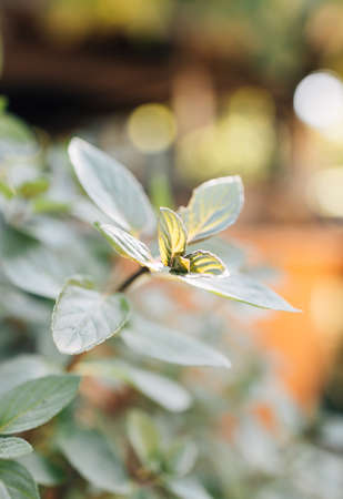 Wild oregano growing in a garden. Oregano sign.Small Oregano Plant