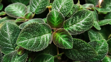 Green leaves on nature background. Top view, green color gradation. Daun tropis