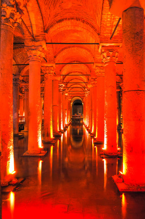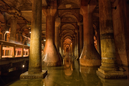 ISTANBUL - SEPTEMBER 16: Underground Basilica Cistern, September, 2014 in Istanbul, Turkey. It is 143m long and 65m wide underground water container, the one of most popular tourist attraction
