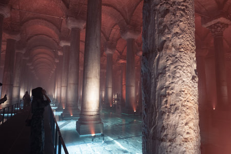 ISTANBUL, TURKIYE - MARCH 01, 2025: Basilica Cistern in Sultanahmet district. Basilica Cistern is the largest cistern that lies beneath the city of Istanbul
