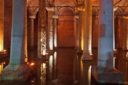The Basilica Cistern - underground water reservoir build by Emperor Justinianus in 6th century, Istanbul, Turkey. The Basilica Cistern is imperial era, fifteenth century, and is one of the biggest tourist attractions in Istanbul.