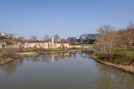 Kagithane,istanbul,Turkey-March 25,2022.Kagithane district on the shore of the Golden Horn with its green parks, historical and modern buildings.