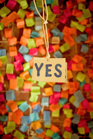 positive YES tag hanging in focus among a vibrant array of colorful sticky notes. Generative AI