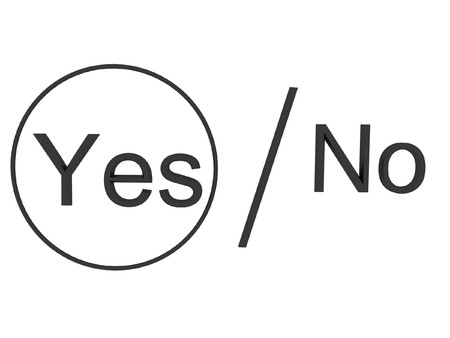 multicolored papers with yes and no lettering near question marks on yellow background