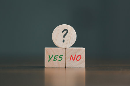 Yes or no decision, Hand holding wooden blocks with and word Yes and No.