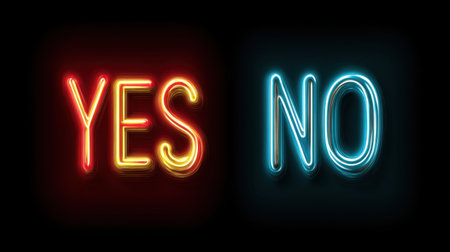 Bright neon light signs showcasing the words Yes in yellow and No in blue against a dark background, symbolizing decision-making.