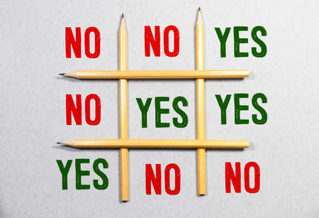 Words Yes and No on contrast background. Opposite answers, choice of positive or negative decision concept