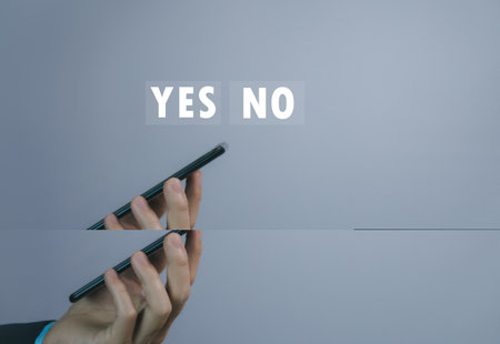Businessman using smartphone to show yes or no. Concept of voting decision. think right or wrong Business options for difficult situations true and false symbols