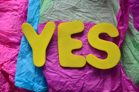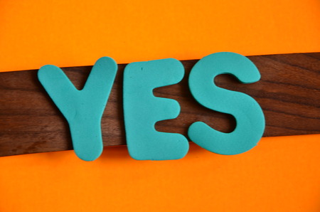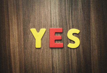 Colorful word Yes on the wooden background.
