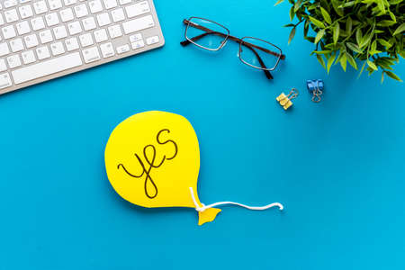 Yes agreement - decision concept. Word Yes on the working table. Top view